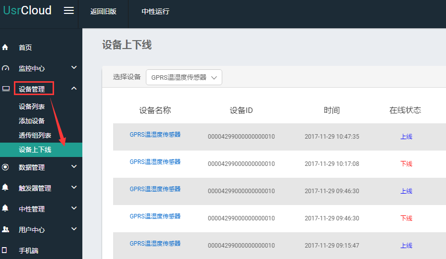 打開有人透傳云http://cloud.usr.cn/,選擇“體驗(yàn)賬號”進(jìn)入(若有透傳云賬號的用戶可直接登錄自己的透傳云賬號)??刹榭匆韵滦略龉δ堋R部梢渣c(diǎn)擊透傳云版本更新地址http://cloud.usr.cn/update_log.html,查看透傳云版本更新詳情。