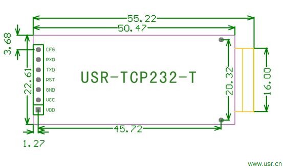 請(qǐng)一定注意 USR-TCP232-T模塊的插針引腳是TTL電平,不要和232電平的設(shè)備進(jìn)行直接連接,否則會(huì)燒壞模塊。