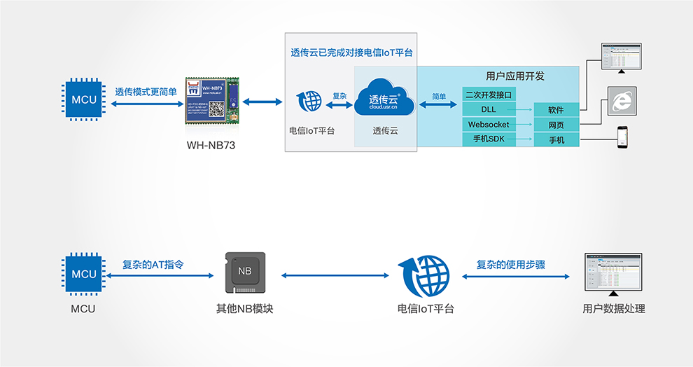 其二:使用NB-IoT模塊接入透傳云服務(wù),日后永久免費(fèi)。