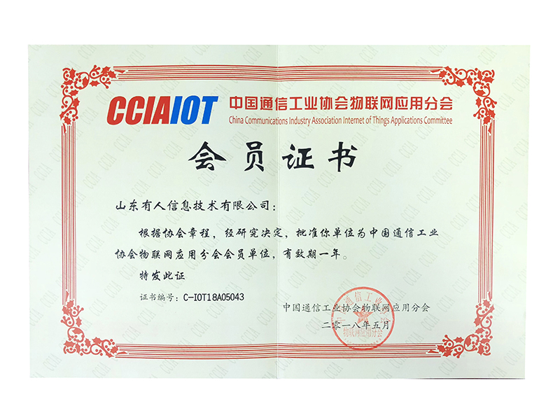近日,山東有人信息技術有限公司受邀成為中國通信工業(yè)協(xié)會物聯(lián)網應用分會會員單位。