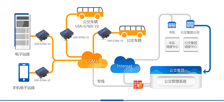 公交集團采購大量3G DTU應用到公交汽車中,將公交汽車的各類信息(包括位置信息、IC卡數據等)