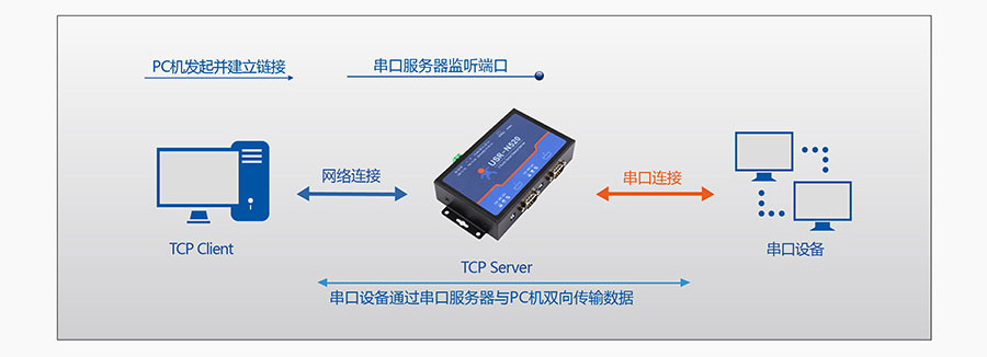 串口服務(wù)器監(jiān)聽設(shè)定的端口并等待TCP客戶端連接
