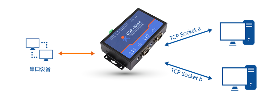 串口服務(wù)器同時(shí)監(jiān)聽端口,將所有接收的數(shù)據(jù)轉(zhuǎn)發(fā)給串口設(shè)備。