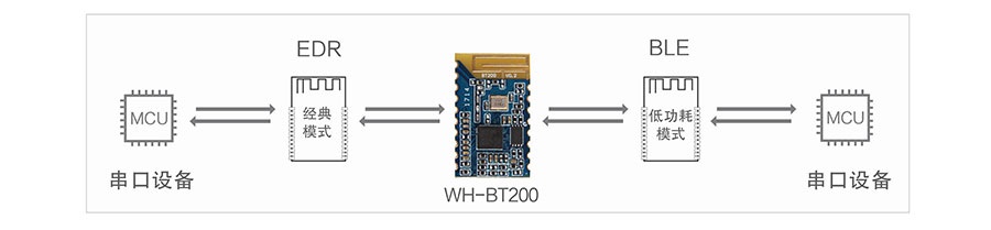 在該模式下,BT200可以實(shí)現(xiàn)經(jīng)典藍(lán)牙設(shè)備與低功耗藍(lán)牙設(shè)備之間相互通信。