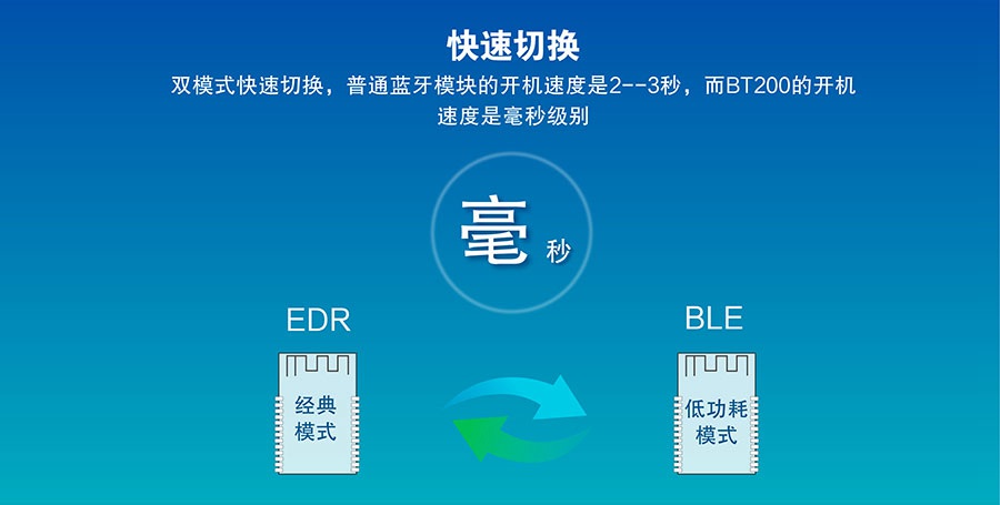 - 降低項(xiàng)目成本:一款雙模藍(lán)牙包含BLE和EDR模式,降低項(xiàng)目成本