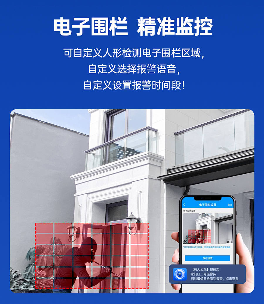 人形檢測(cè)觸發(fā)報(bào)警,電話、APP通知報(bào)警