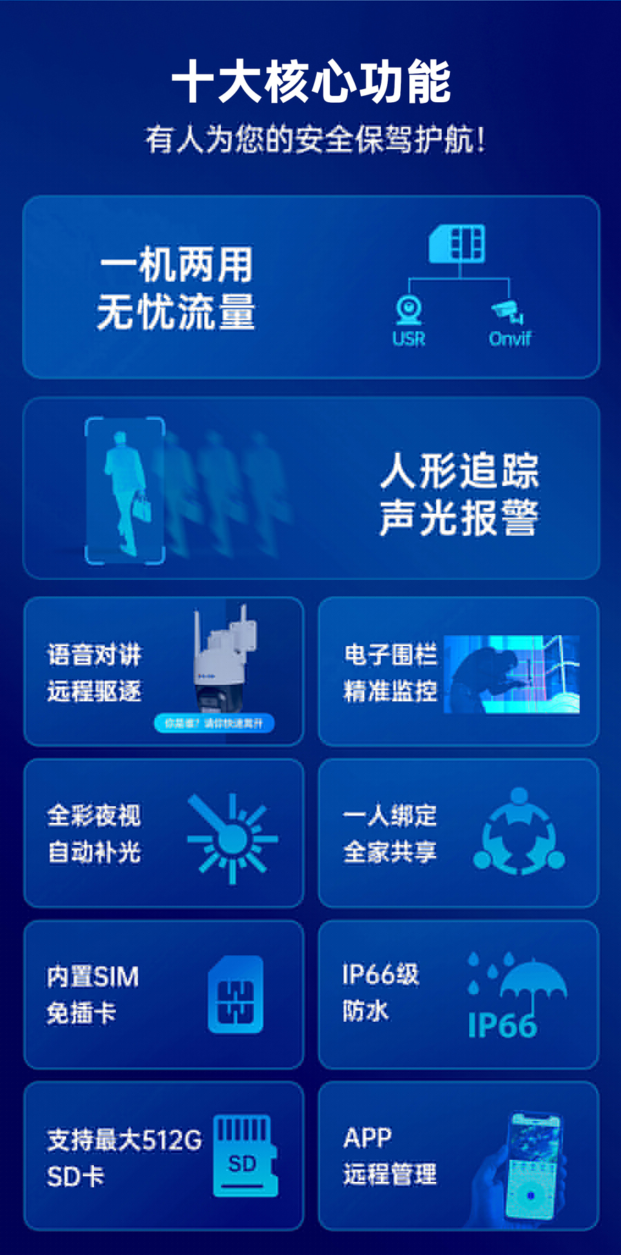 多聯(lián)可擴(kuò)展功能,支持外掛1路普通IPC,只需支持標(biāo)準(zhǔn)onvif協(xié)議的IPC,不限品牌,共用一張流量卡和內(nèi)存卡,App觀看兩路畫面