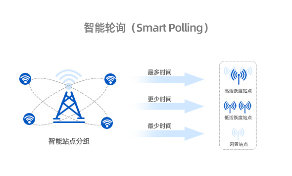 業(yè)界聞名的iPoll 3智能輪詢(xún)無(wú)線(xiàn)協(xié)議 iPoll 3 PTMP(點(diǎn)對(duì)多點(diǎn))專(zhuān)有協(xié)議是基于TDMA時(shí)分多址技術(shù)的創(chuàng)新無(wú)線(xiàn)協(xié)議,不僅可以消除傳輸擁堵和戶(hù)外遠(yuǎn)距離點(diǎn)對(duì)多點(diǎn)傳輸場(chǎng)景中產(chǎn)生的自身干擾,更能通過(guò)最新的智能輪詢(xún)機(jī)制根據(jù)已連接站點(diǎn)的活躍度對(duì)站點(diǎn)進(jìn)行分組,需要更少帶寬的站點(diǎn)被分到低活躍或空閑組,分配更少的通信時(shí)長(zhǎng)(輪詢(xún)次數(shù)更少),而需要更大流量或帶寬的站點(diǎn)被分到活躍組,分配更多的通信時(shí)長(zhǎng)(輪詢(xún)次數(shù)更多)。通過(guò)減少輪詢(xún)站點(diǎn)的總次數(shù),實(shí)現(xiàn)更低的延遲和更高的總吞吐量,即使是1對(duì)64以上的點(diǎn)對(duì)多點(diǎn)組網(wǎng),網(wǎng)絡(luò)整體效率也不會(huì)出現(xiàn)明顯的下降。