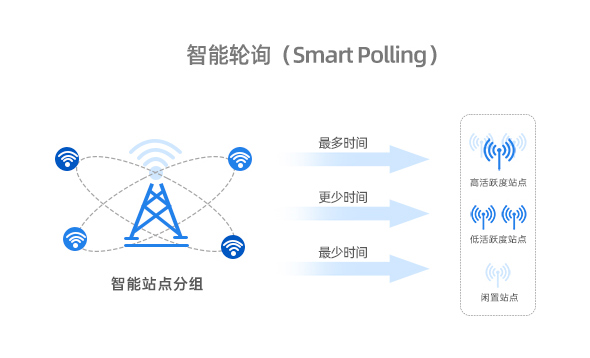 業(yè)界聞名的iPoll 3智能輪詢無線協(xié)議 iPoll 3 PTMP(點(diǎn)對多點(diǎn))專有協(xié)議是基于TDMA時分多址技術(shù)的創(chuàng)新無線協(xié)議,不僅可以消除傳輸擁堵和戶外遠(yuǎn)距離點(diǎn)對多點(diǎn)傳輸場景中產(chǎn)生的自身干擾,更能通過最新的智能輪詢機(jī)制根據(jù)已連接站點(diǎn)的活躍度對站點(diǎn)進(jìn)行分組,需要更少帶寬的站點(diǎn)被分到低活躍或空閑組,分配更少的通信時長(輪詢次數(shù)更少),而需要更大流量或帶寬的站點(diǎn)被分到活躍組,分配更多的通信時長(輪詢次數(shù)更多)。通過減少輪詢站點(diǎn)的總次數(shù),實(shí)現(xiàn)更低的延遲和更高的總吞吐量,即使是1對64以上的點(diǎn)對多點(diǎn)組網(wǎng),網(wǎng)絡(luò)整體效率也不會出現(xiàn)明顯的下降。