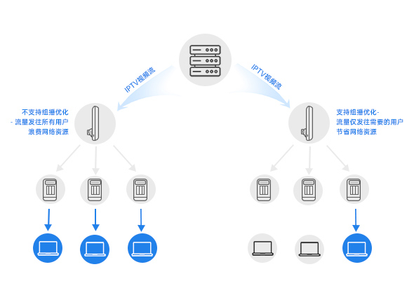 支持組播優(yōu)化 組播優(yōu)化功能讓組播流量僅發(fā)往有需要的終端,避免網(wǎng)絡(luò)資源的浪費(fèi)。