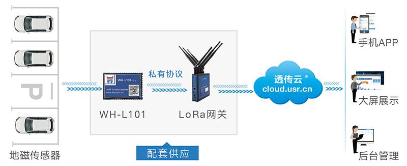 2、車位信息通過LoRa模塊WH-L101傳輸至LoRa集中器USR-LG220,集中器隨后上報至透傳云平臺。