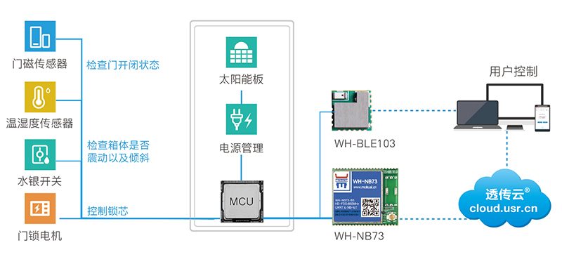 穩(wěn)恒科技提供的光交箱一站式通訊方案,通過NB-IoT+BLE技術(shù),實(shí)現(xiàn)對光交箱門鎖的遠(yuǎn)程控制、鎖狀態(tài)采集以及近場BLE通信應(yīng)急開鎖。同時(shí),NB-IoT設(shè)備可直接對接有人透傳云,大幅縮短項(xiàng)目周期和項(xiàng)目復(fù)雜度。