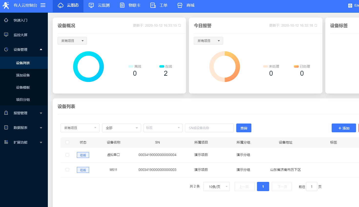 6.在云端可看到添加的虛擬串口上線