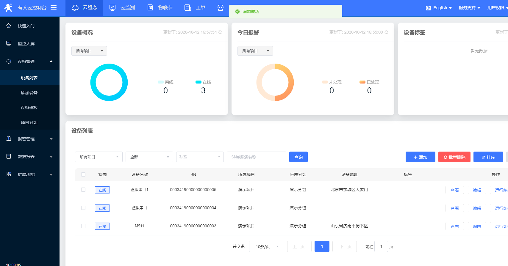 5.可以在這里看到默認(rèn)生成的設(shè)備編號(hào)和通信密碼,點(diǎn)擊完成,云端成功添加設(shè)備