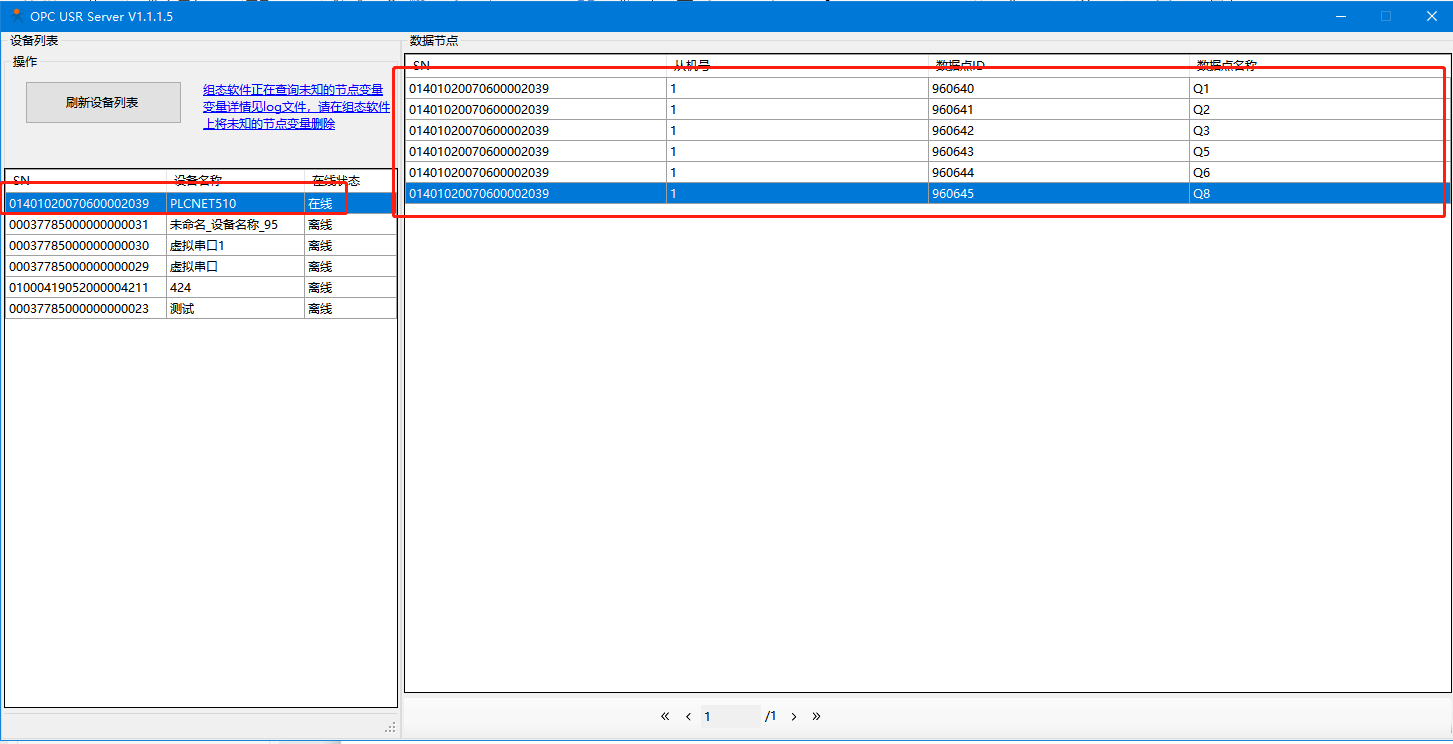 打開OPC軟件,登錄有人云賬號(hào)和密碼,OPC軟件同步有人云上PLCNET510的數(shù)據(jù)點(diǎn)