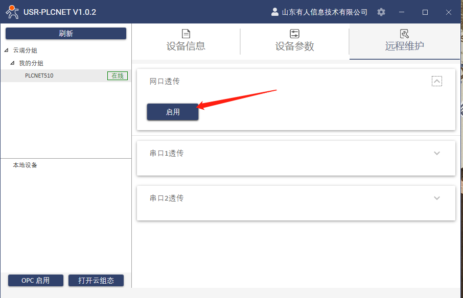 8.點(diǎn)擊遠(yuǎn)程維護(hù),啟用網(wǎng)口透?jìng)?/p>