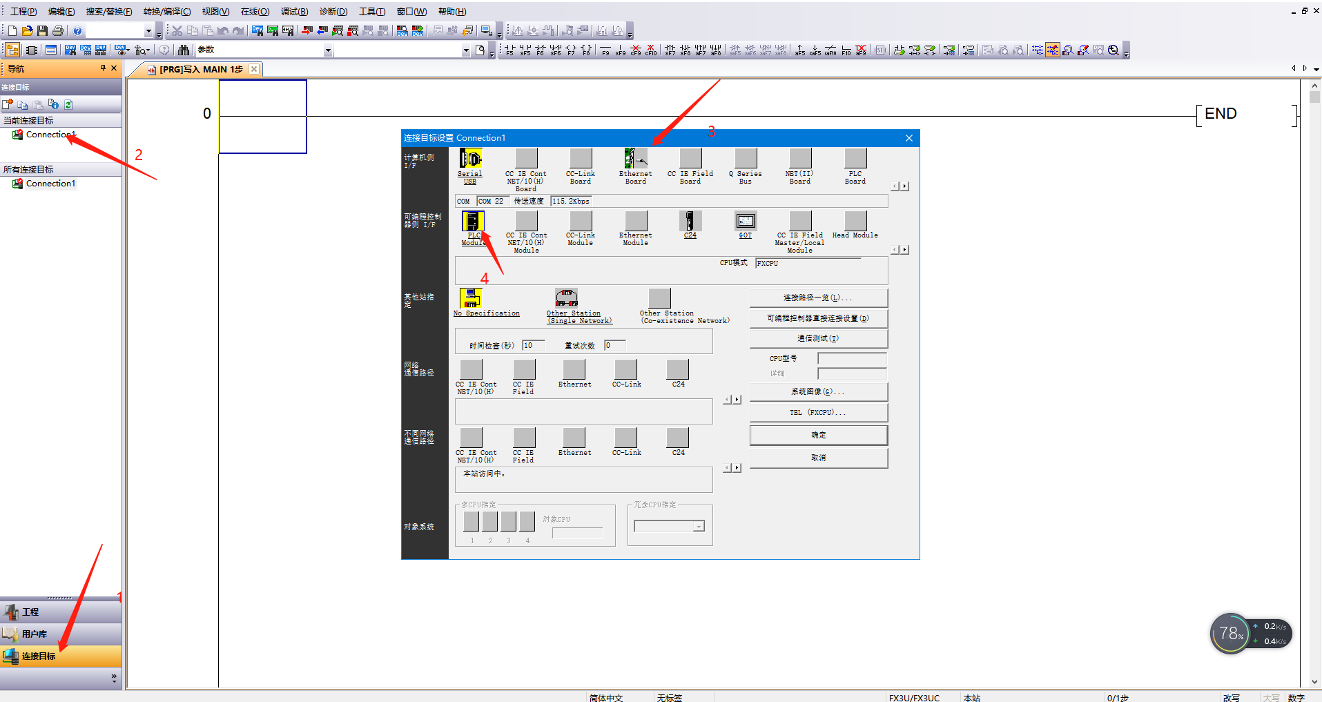10.打開三菱上位機(jī)軟件,新建工程,選擇對(duì)應(yīng)PLC型號(hào)