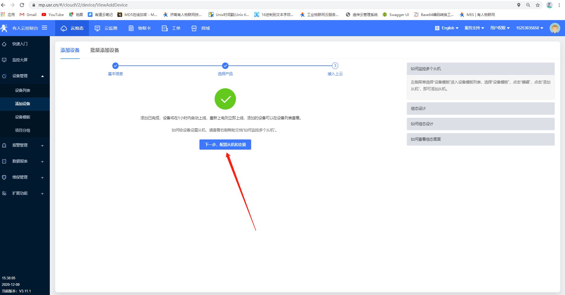 1.登錄有人云賬號和密碼,點擊添加設(shè)備,輸入PLCNET510的SN和MAC,點擊下一步