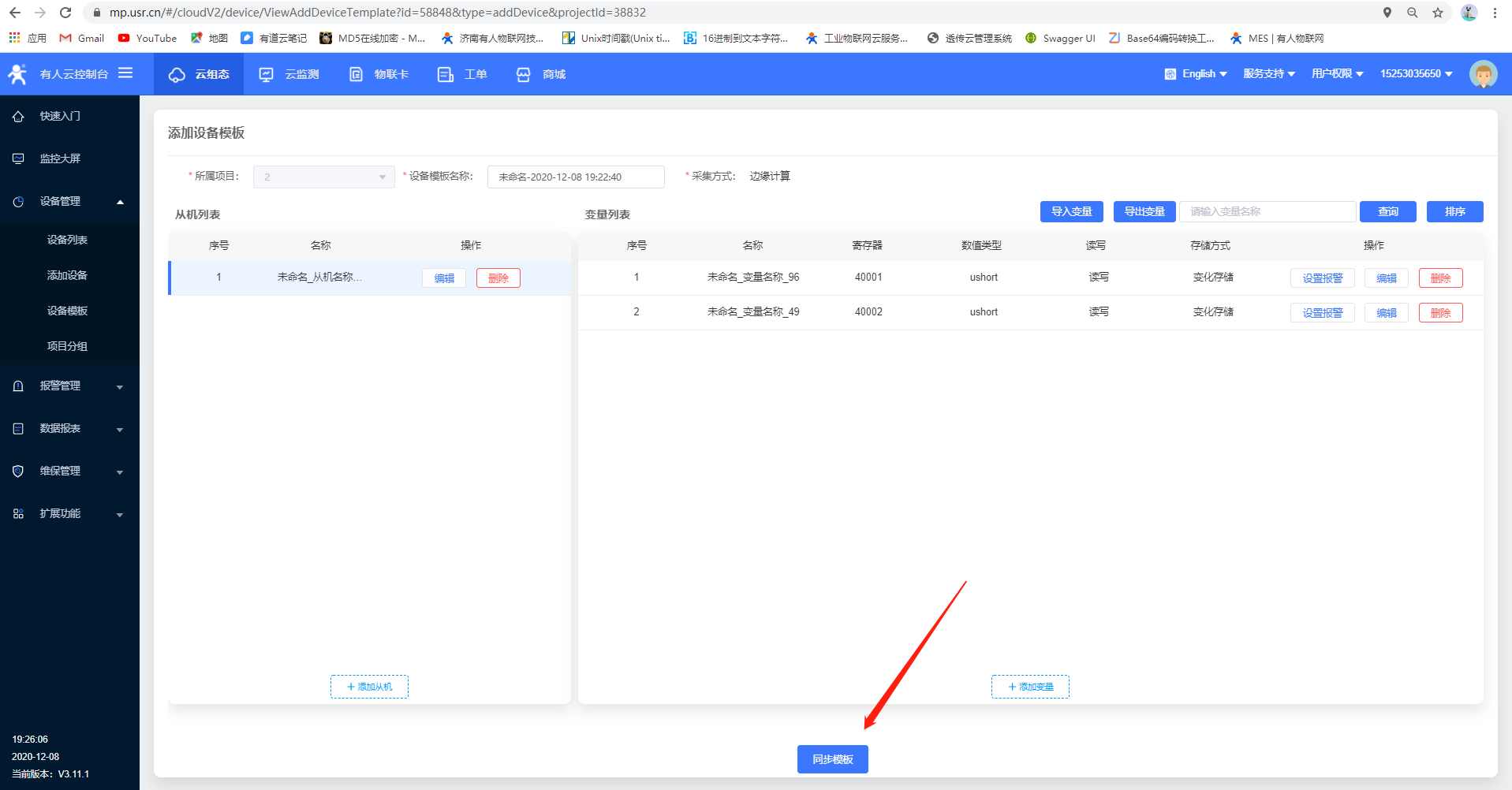 7.點擊同步模板生成設備模板