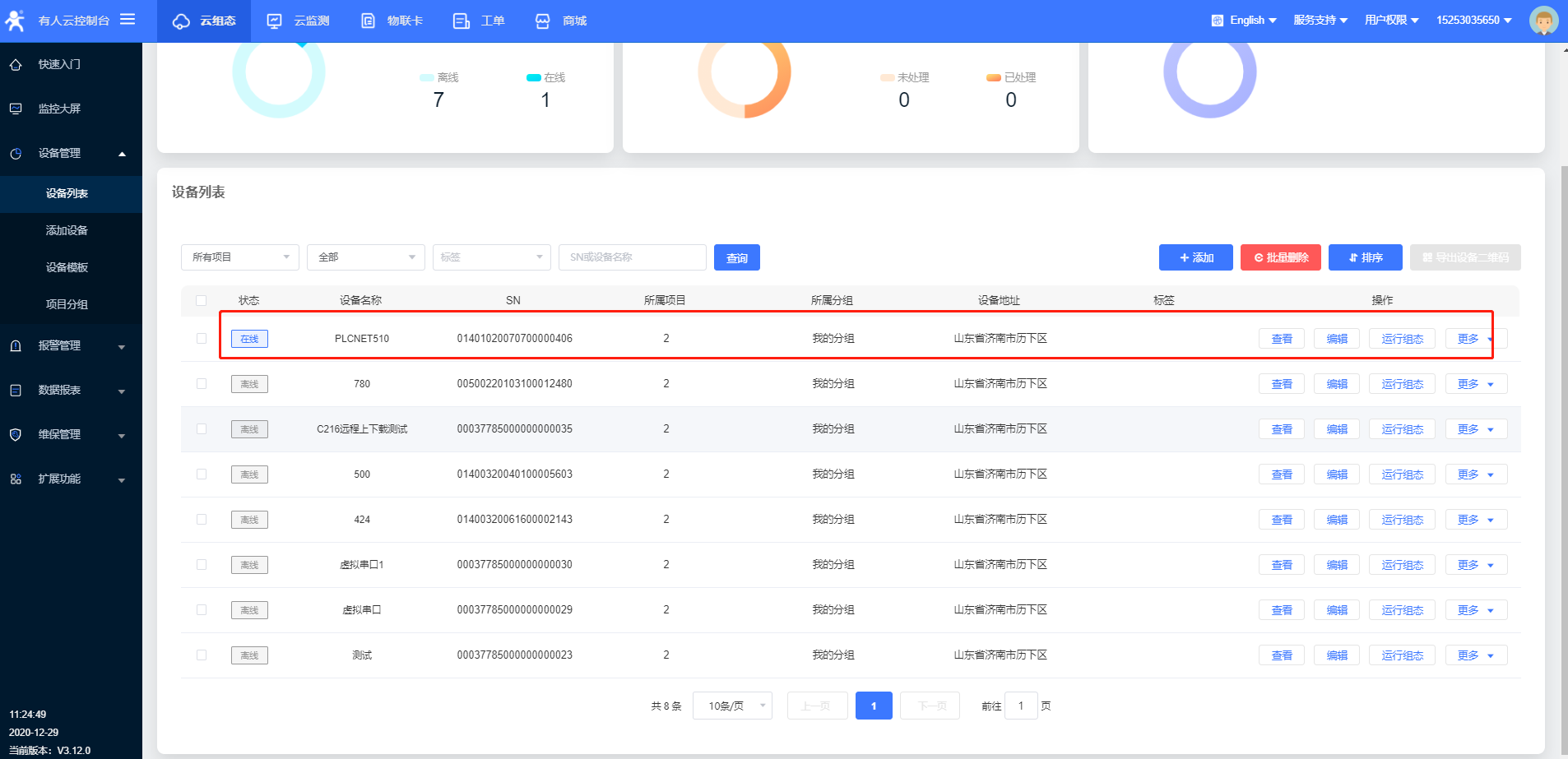 8.可以看到云端設備上線