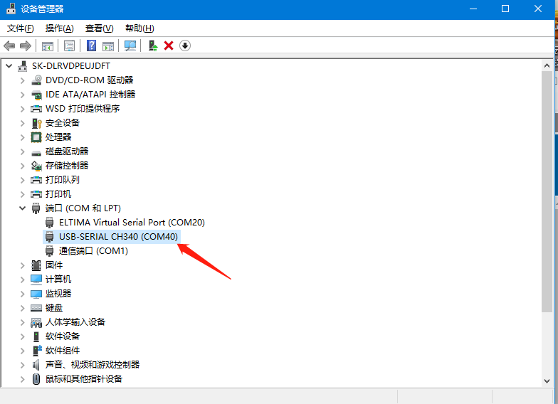 10、在電腦設(shè)備管理器處確認(rèn)串口轉(zhuǎn)USB插在電腦上識(shí)別到的COM口為:COM40。