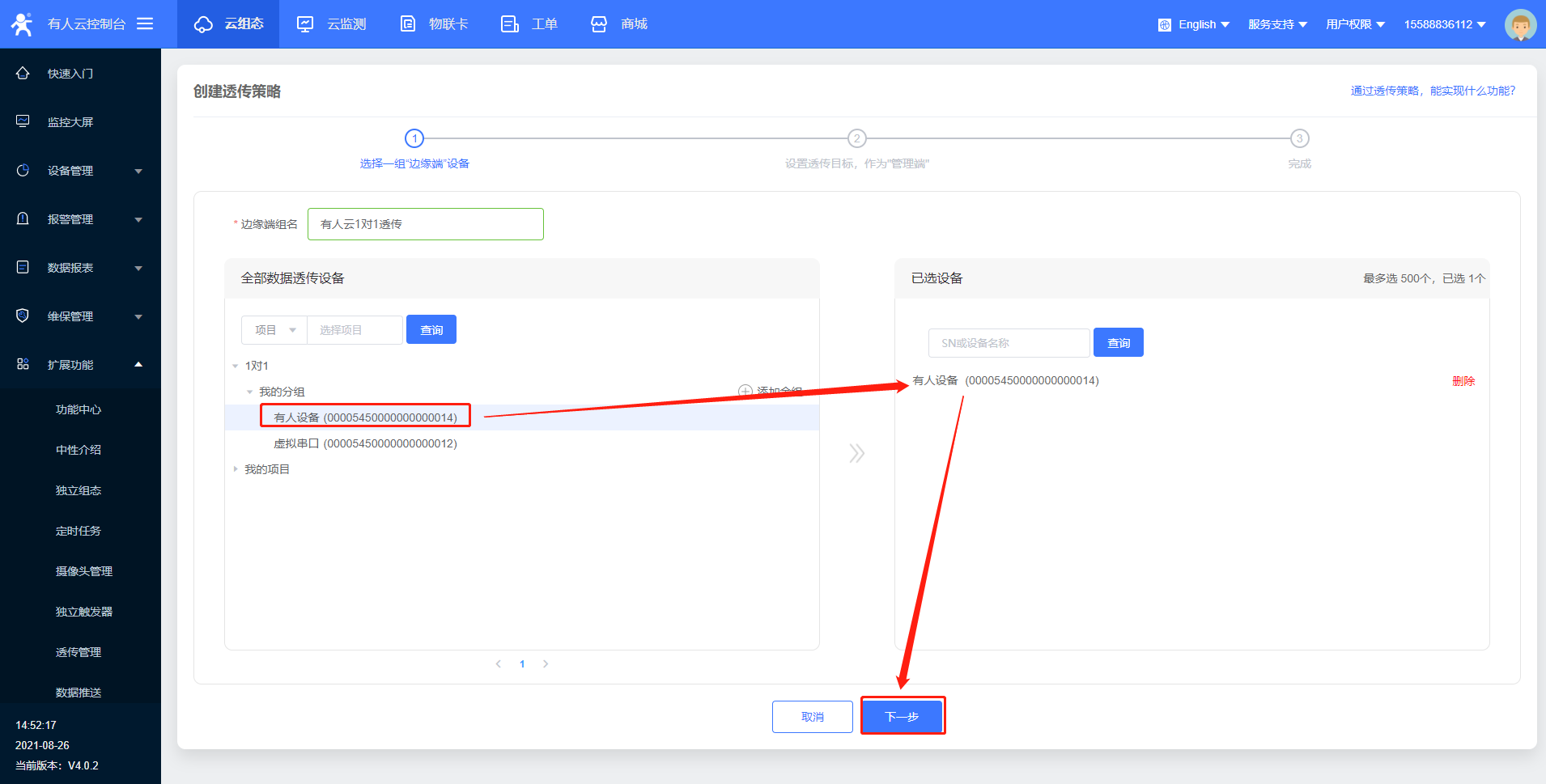2>云平臺添加設(shè)備,G807選擇“SN不支持,點這里”,用系統(tǒng)自動分配的編號和密碼即可
