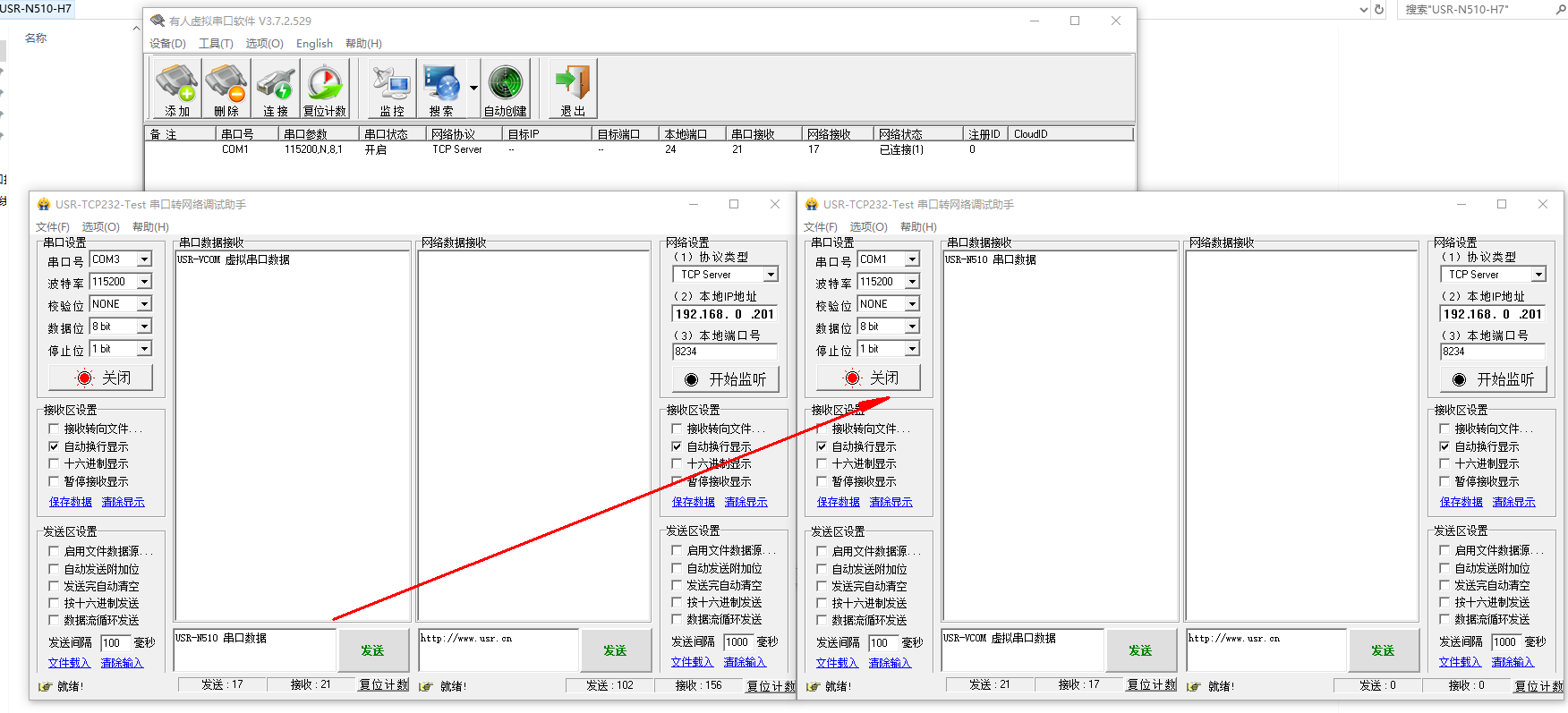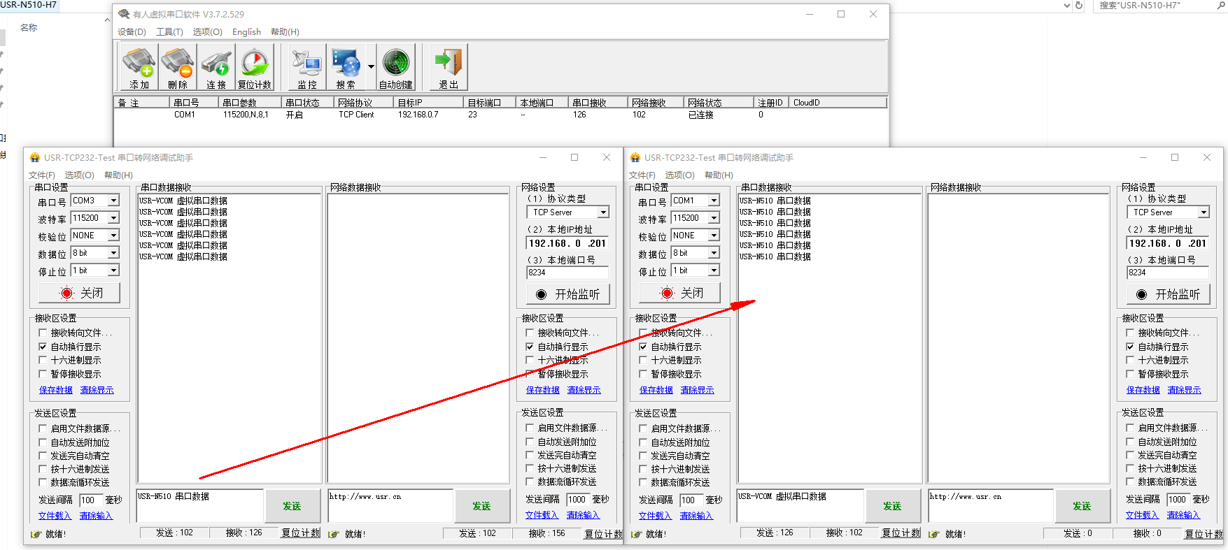 USR-N510-H7和虛擬串口局域網(wǎng)一對(duì)一通訊案例