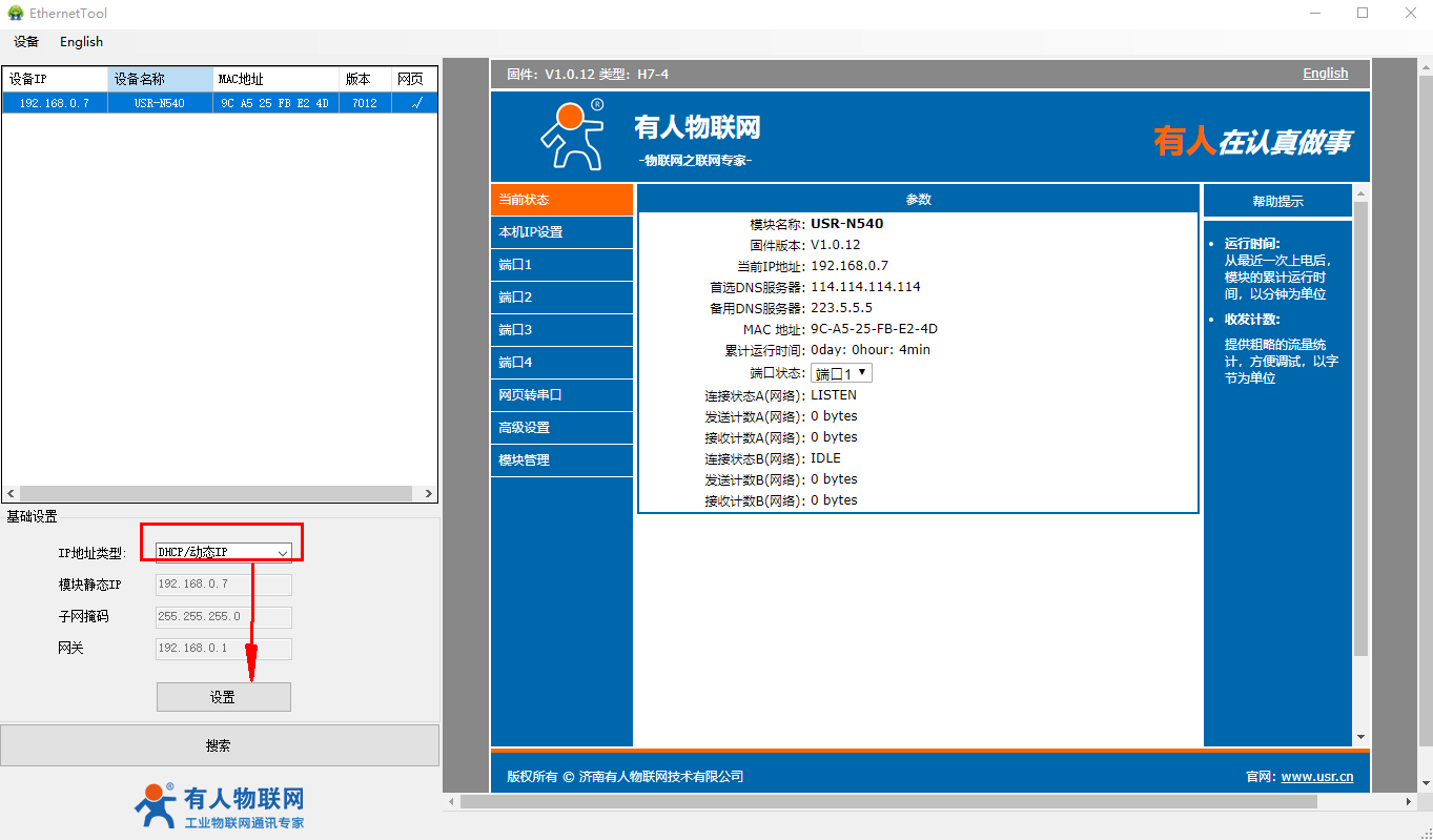 2、USR-N540-H7設置軟件http://www.lifj.com.cn/Download/383.html