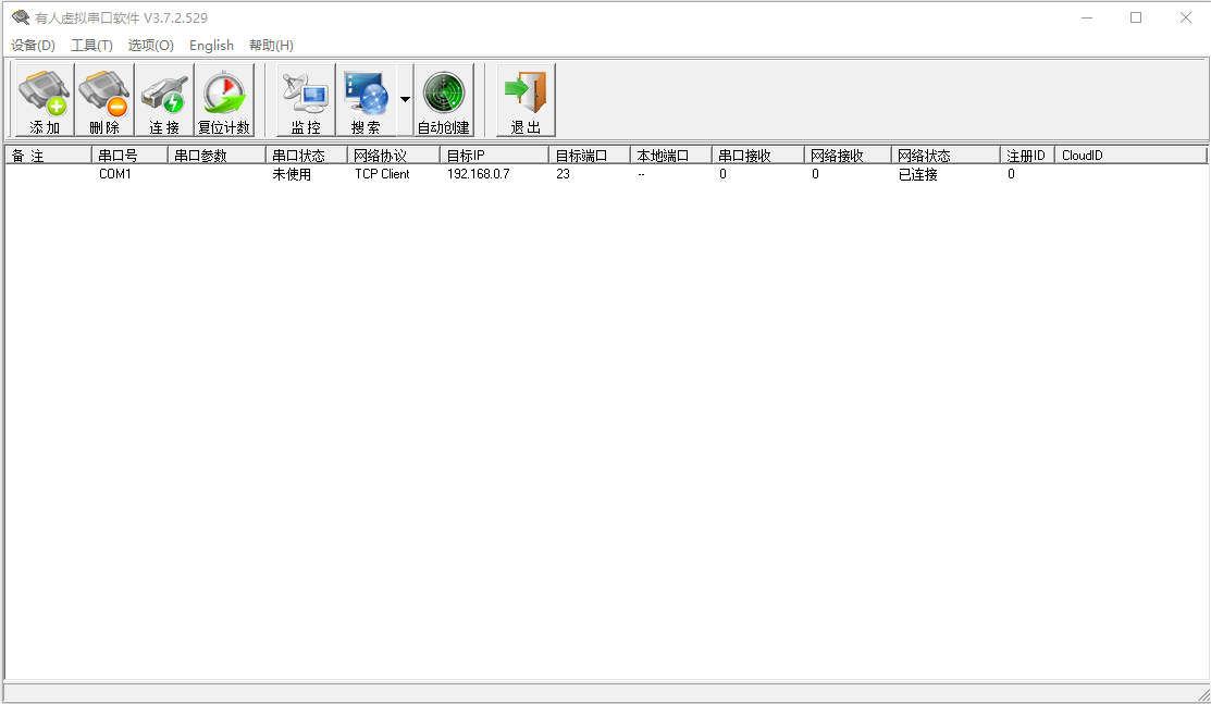 電腦下載的虛擬串口軟件,添加一個虛擬串口COM1。遠程IP填N540的IP,遠程端口填N540的端口23。