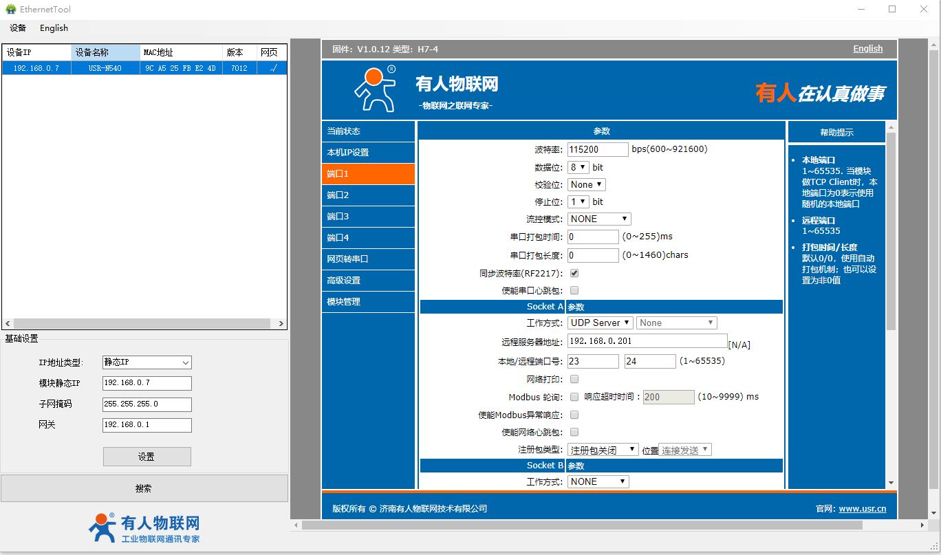 顯示IP 192.168.0.7之后,單擊IP,右側顯示N540參數(shù)設置頁面。