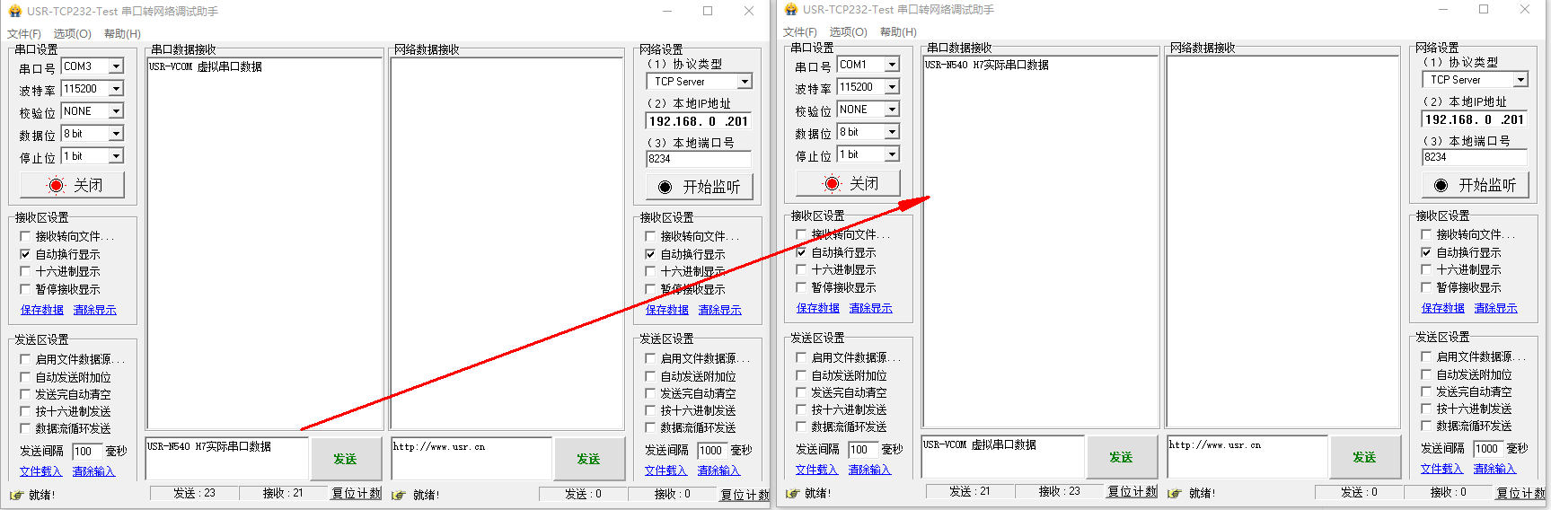 測試兩個串口之間的數(shù)據(jù)傳輸,就是N540 485串口和虛擬串口之間的數(shù)據(jù)傳輸。