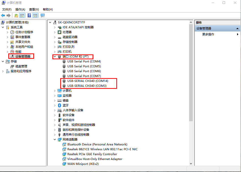 點擊電腦計算機,右擊鼠標,點擊設備管理器,查看端口,確認2條USB-RS485串口線的COM口號,有人測試電腦是COM3和COM14