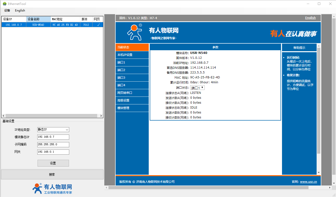 2、USR-N540-H7設置軟件http://www.lifj.com.cn/Download/383.html