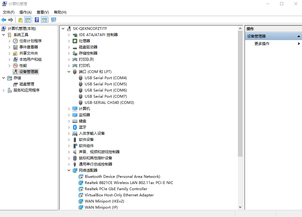 電腦鼠標(biāo)點(diǎn)擊計(jì)算器管理,右擊,點(diǎn)開設(shè)備管理器,點(diǎn)擊端口,查看USR-IO34-LR-C 接的USB-RS485串口線COM口號。