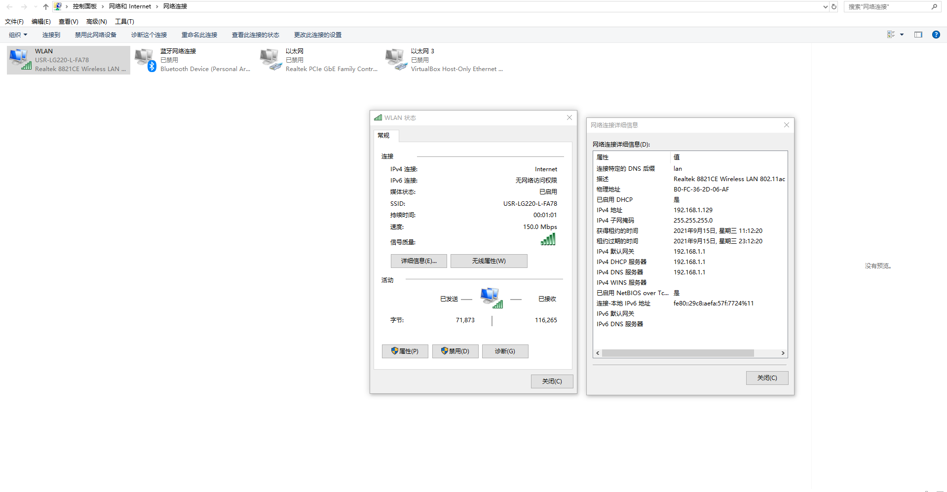 1、電腦連接USR-LG220-L的WiFi,可以從控制面板看到USR-LG220-L分配給電腦的IP和網(wǎng)關(guān)。關(guān)閉防火墻。