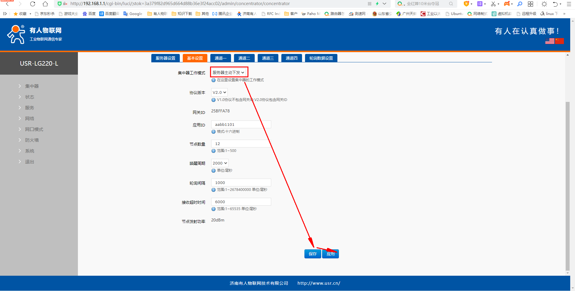 3、USR-LG220-L網(wǎng)頁集中器參數(shù)設(shè)置: