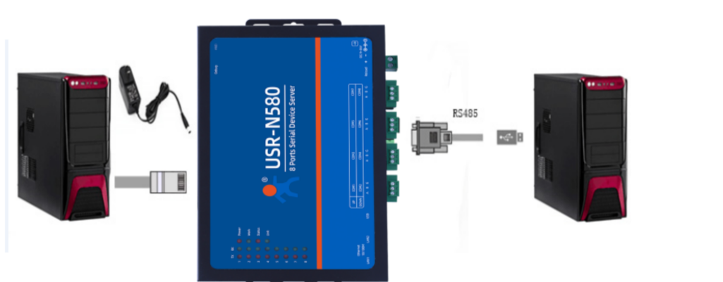 USR-N580-H7產(chǎn)品,USB-RS485串口線接N580串口一,注意485接線線序,USB-RS485 A線接N580 串口一的A端子,USB-RS485 B線接N580 串口一的B端子,USB頭插入電腦USB口。