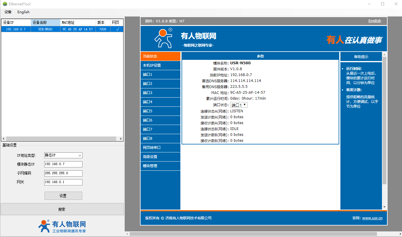 2、USR-N580-H7設置軟件: