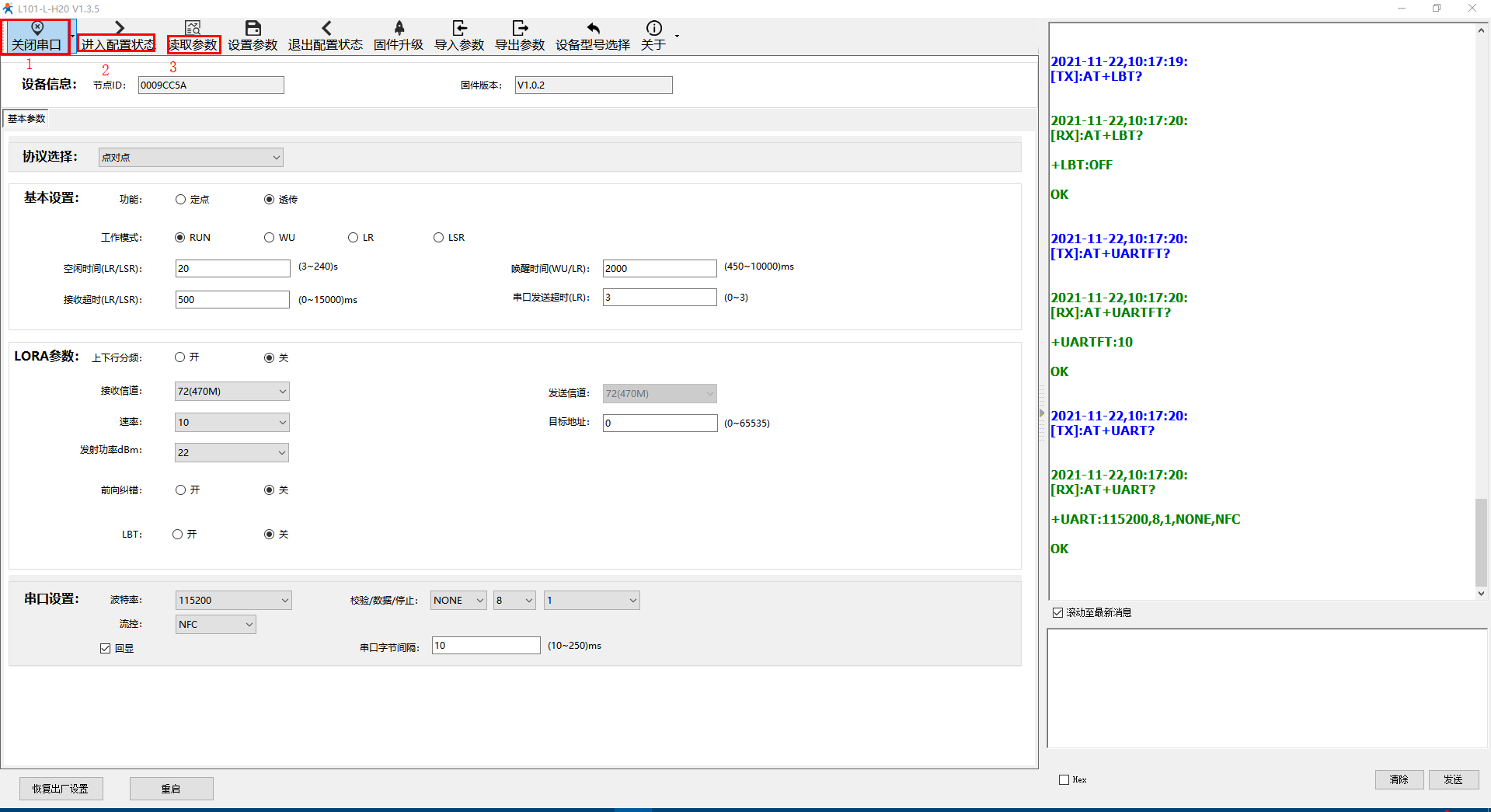 WH-L101-L-H20點(diǎn)對點(diǎn)透傳模式示例