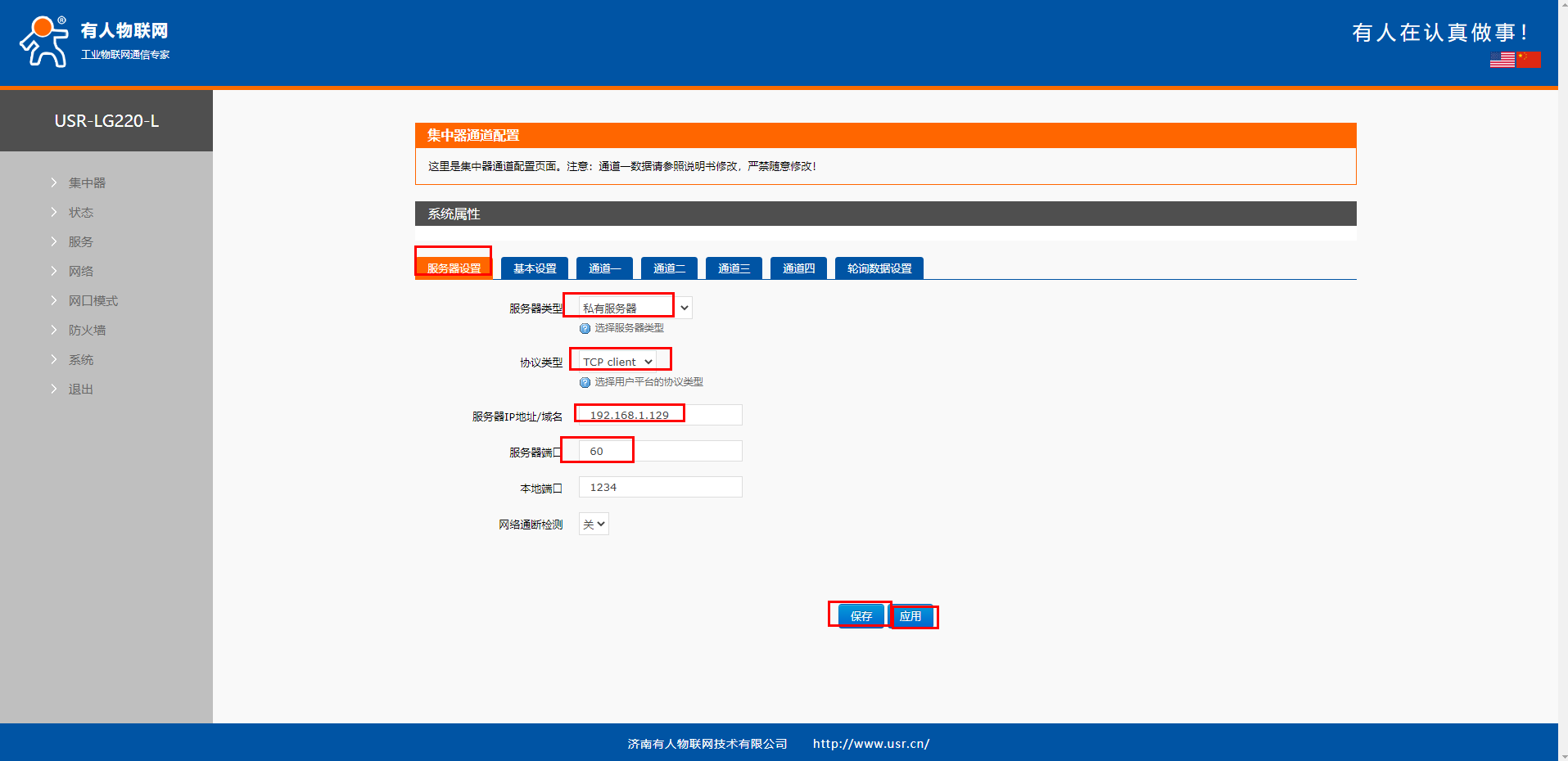 1、登錄USR-LG220內(nèi)置網(wǎng)頁: