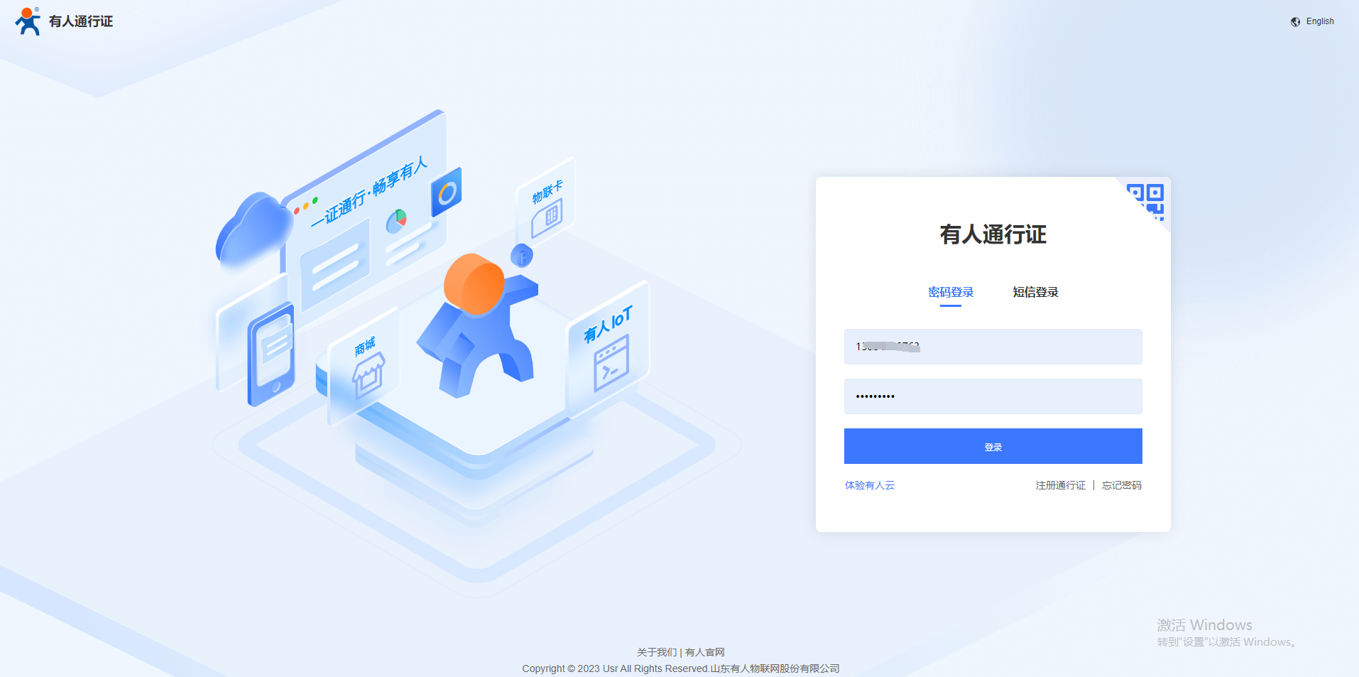 1、登錄有人云平臺(tái):https://account.usr.cn/#/login_cps(如果沒有賬號(hào)先申請(qǐng)通行證)