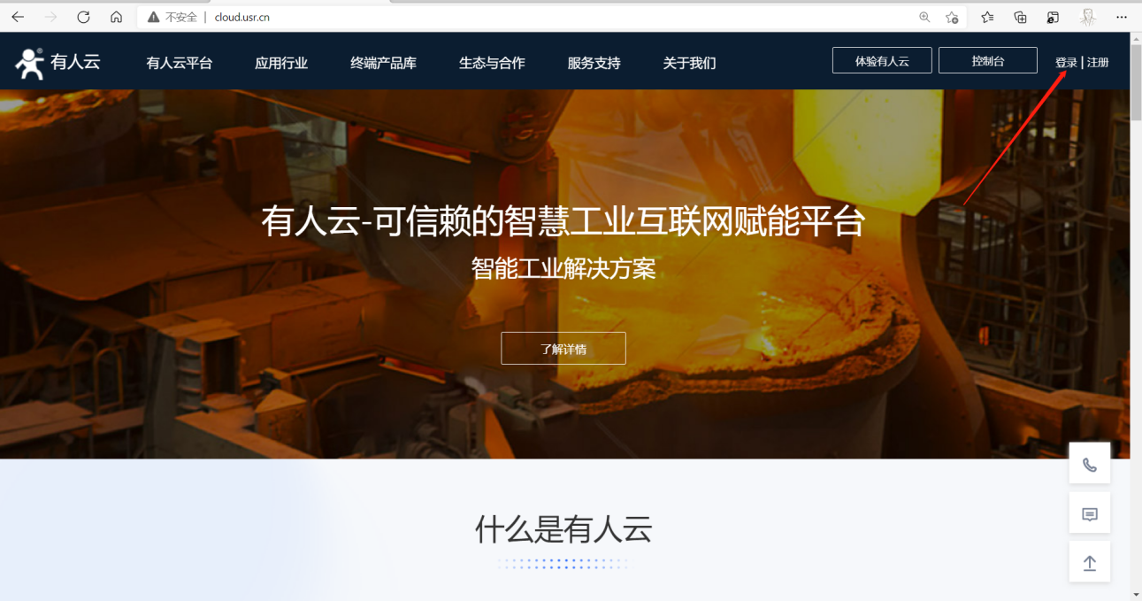 1.打開有人云http://cloud.usr.cn/cloud網(wǎng)址,未注冊先注冊,有賬號直接選擇登入