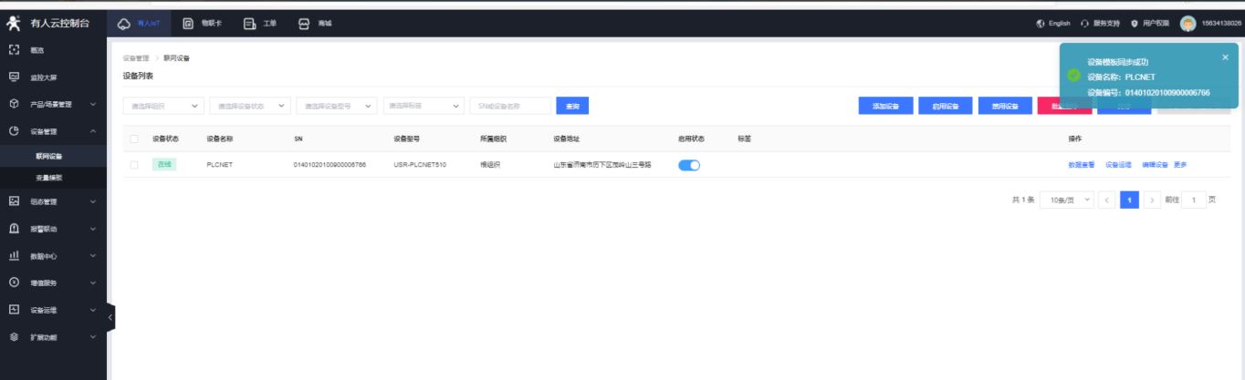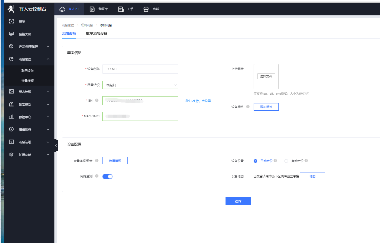 7.點擊保存,成功添加設備