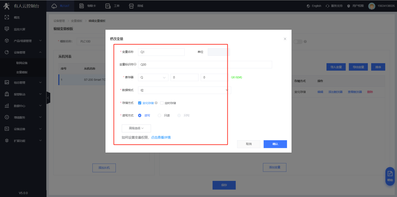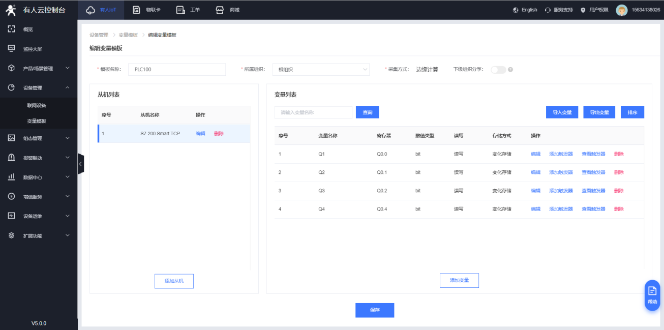 4. 選擇完模板后,點擊保存,重啟設備,然后配置從機和變量