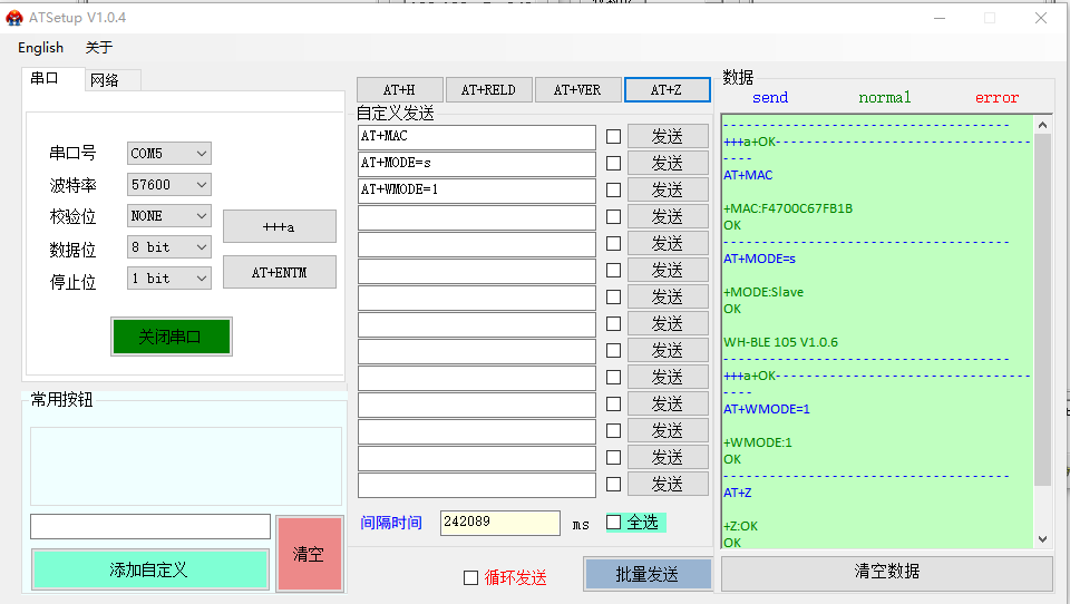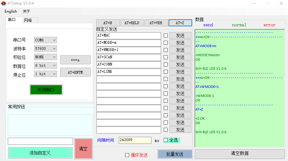 二、WH-BLE105主機(jī)模塊參數(shù)設(shè)置: