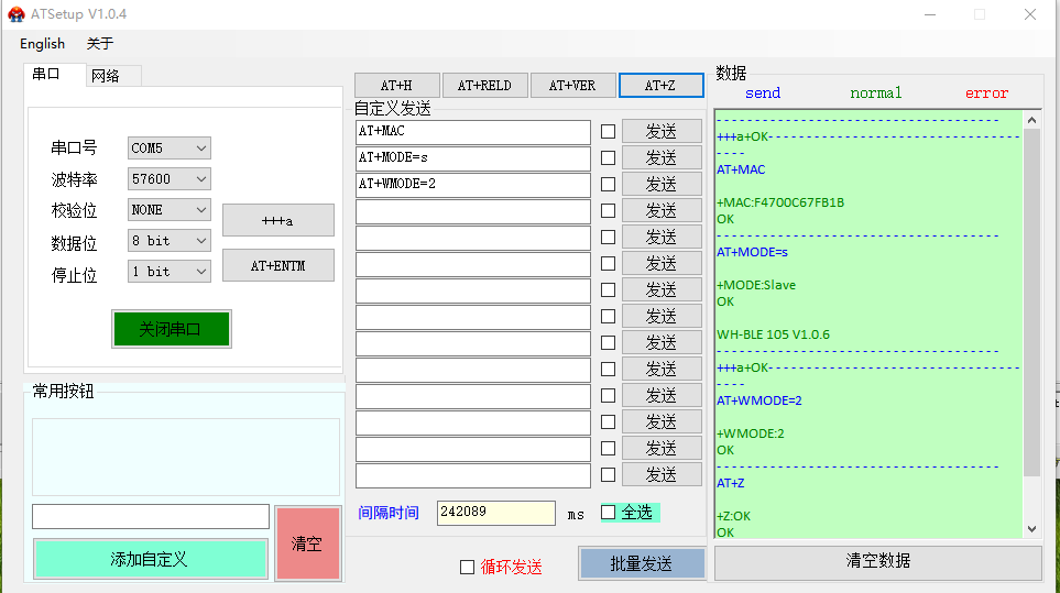 (3)發(fā)送AT+MODE=s 設(shè)置從機(jī)模式