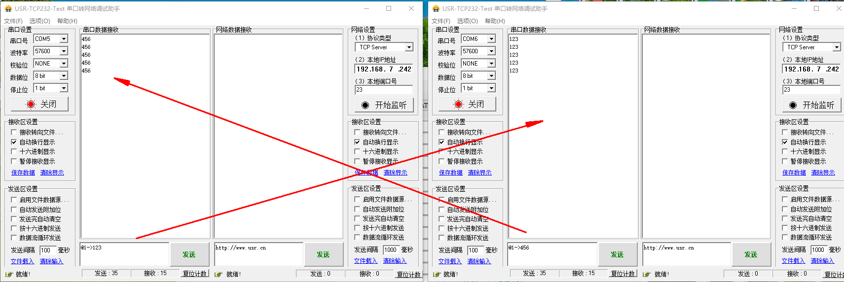 WMODE=2 時,數(shù)據(jù)發(fā)送前需增加@n->協(xié)議頭,但接收時無協(xié)議頭指示,具體可參考示例截圖。