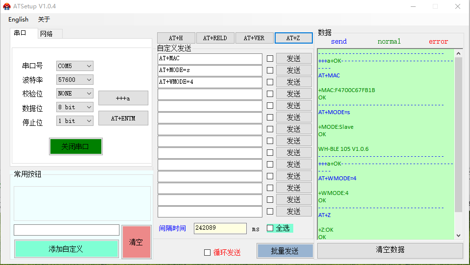 二、WH-BLE105主機(jī)模塊參數(shù)設(shè)置:
