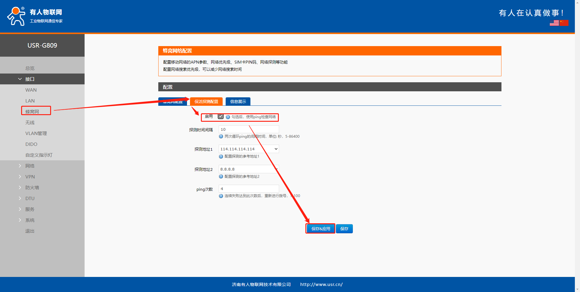 3、接口---蜂窩網(wǎng)--蜂窩網(wǎng)配置---?;钐綔y配置---啟用