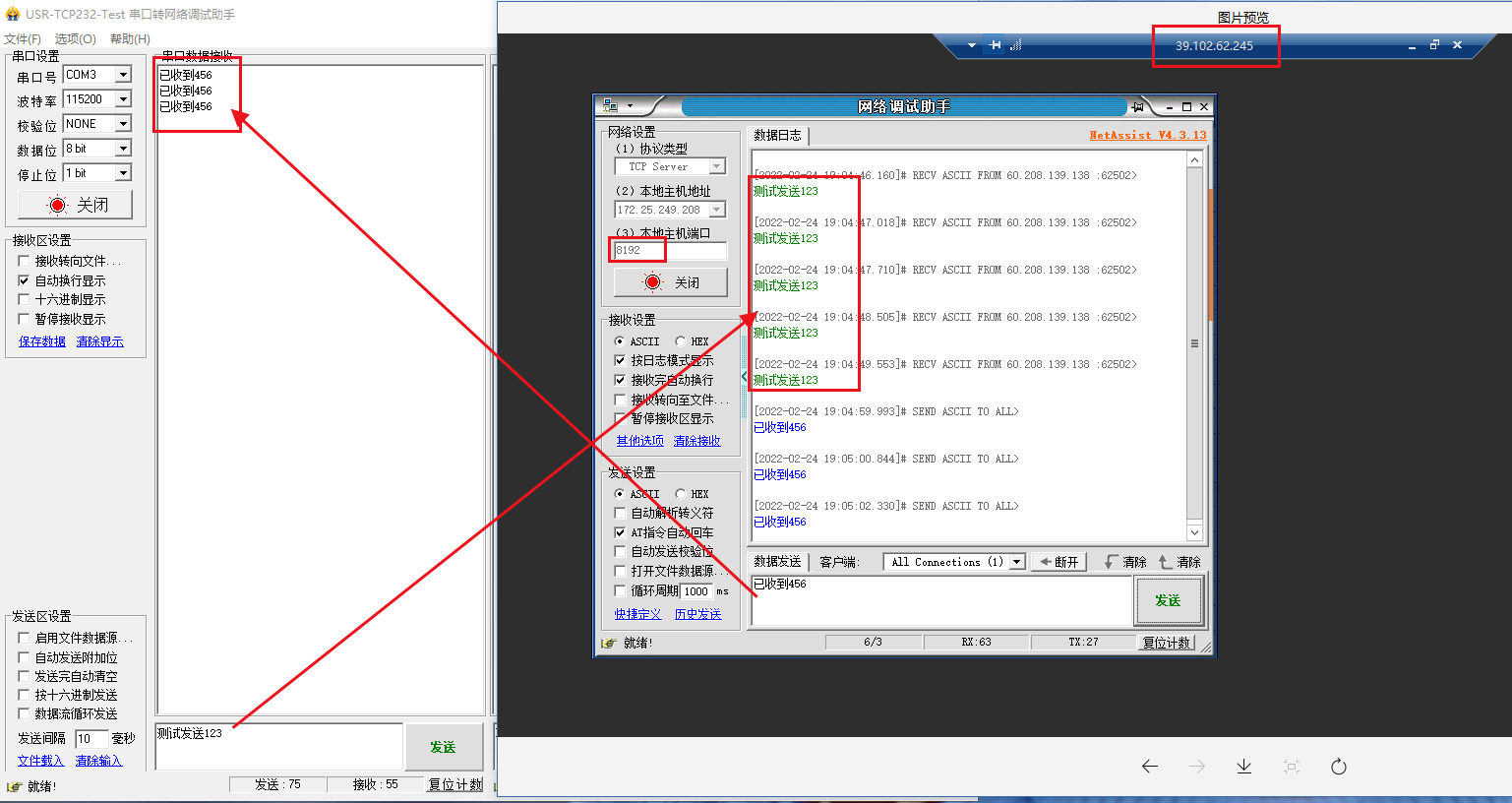 用戶(hù)的串口設(shè)備可以通過(guò)本模塊發(fā)送數(shù)據(jù)到遠(yuǎn)程服務(wù)器,模塊也可以接收來(lái)自服務(wù)器的數(shù)據(jù),并將信息轉(zhuǎn)發(fā)至串口設(shè)備。